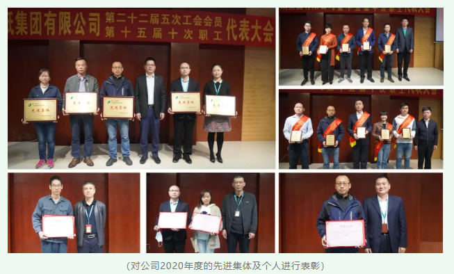 精准服务促和谐》工会工作报告;听取了总经理助理吴素文所作的《广纸集团“十四五”战略规划》报告;审议了《广州造纸集团有限公司工会2020年财务工作报告》;审议并通过了《广州造纸集团有限公司第二十二届五次工会会员代表暨第十五届十次职工代表大会决议(草案)》,并对公司2020年度的先进集体及个人进行了表彰。